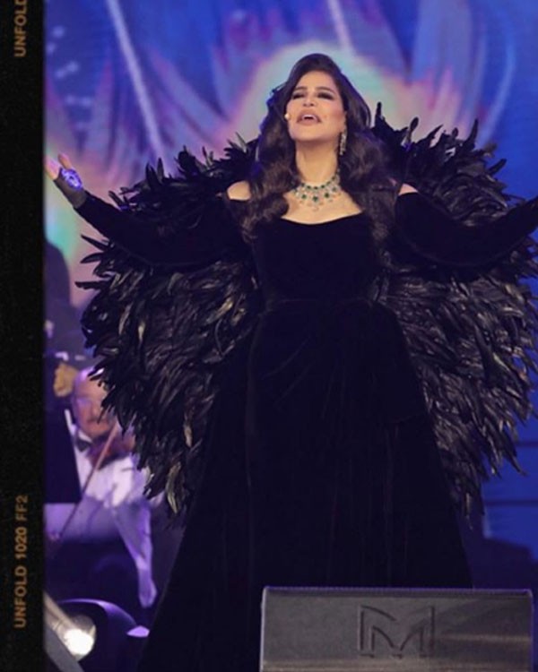 فستان احلام الاسود في موسم الرياض. أحلام أشعلت حفلها ضمن فعاليات موسم الرياض بخمس إطلالات متنوعة سحرت العيون بجمال تفاصيلها فتألقت في أول الحفل بفستان أسود مخملي كشف عن كتفيها بتصميم لافت من الخلف مثبت اكسسوار ضخم من الريش الأسود ليكون لحظة دخولها. الوكيل الاخباري - أصبحت الفنانة الإماراتية أحلام هي الأغلى ثمنا خلال فعاليات موسم الرياض بشهادة رئيس الهيئة العامة للترفيه في السعودية المستشار تركي آل الشيخ. كانت ليلة فنانة العرب أحلام ليلة أسطورية بكل ما للكلمة من معنى إذ إنها كانت ختام حفلات موسم الرياض الذي استمر أسابيع عدة وتم تتويج هذا الموسم بليلة فنية مليئة بالفخامة من كل النواحي.